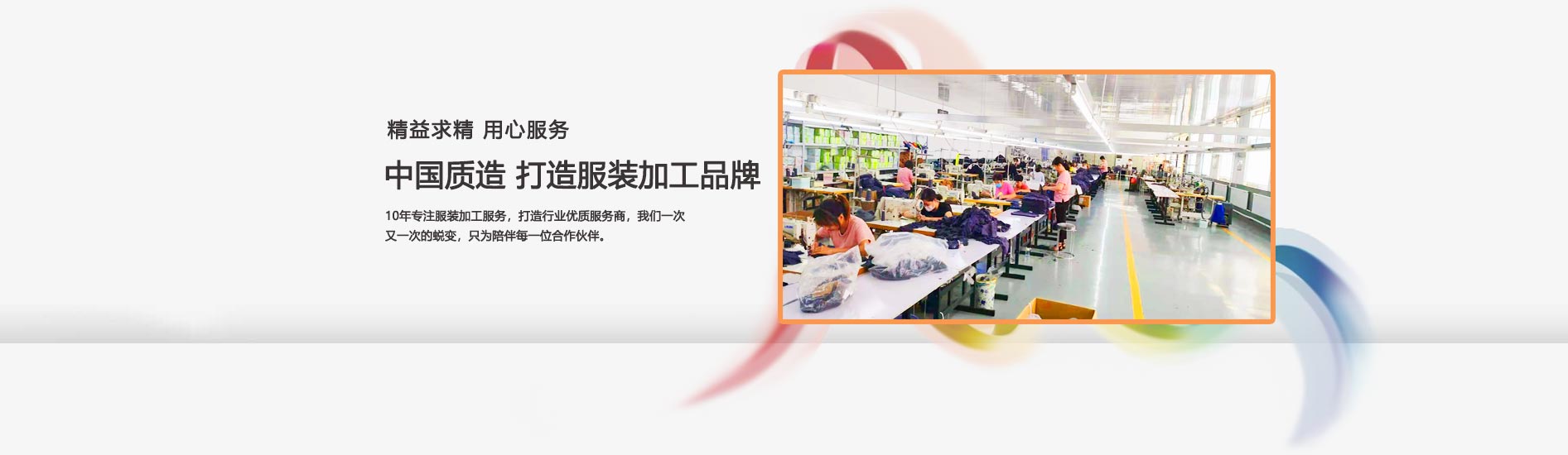 衣佳人服装有限公司坐落于美丽的风筝之都~潍坊。10余年来,公司专注于品牌服装的定制生产。目前服装厂配备有全套现代化的服装(针织)制造设备150余台,有高速平缝机、三针五线机,四针六线机、大型抽湿烫台等设备,特种机有平头锁眼机、高速电子套结机、钉扣机、撬边机、双针平缝机、筒式三针绷缝机、双线链式缝纫机。服装厂的建设,充分考虑产学结合,发挥人才与设备技术优势,为企业提供技术支持。同时与大型服装企业进行...